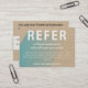 O texto deste cartão de visita de referência é personalizável Este cartão foi concebido para informar os clientes de um desconto de oferta especial recebido, como 20% do próximo pedido do cliente quando um amigo apresenta este cartão de referência. Este cartão é excelente para os proprietários de pequenas empresas que desejam aumentar sua base de clientes. Este design apresenta a palavra "REFER" com uma sombra pendente com gradiente e cheia de gradiente.
