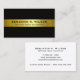 Cartão de visita profissional moderno e elegante, com uma faixa de ouro, com um nome e um título em fundo negro profundo. Adicione detalhes de contato no verso em caracteres modernos.