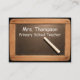 Como a minha primeira ardente escolar.. Fotografia de uma ardósia escolar com giz. Design sobre cartões de visitas com fundo escuro e texto: Nome + professor primário. Você pode facilmente alterar o texto (cor, fonte, tamanho e posição) clicando no botão personalizar. Produtos de escritório e escolas, casa, roupas, cartões e muito mais... Não se esqueça da coleção inteira. Coleção especial para professores aposentados.