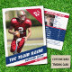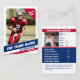 Apresentando o epítome dos memorandos de futebol americanos: nosso cartão de futebol personalizável! Mergulhe no mundo eletrificante da glória de ferro com este cartão meticulosamente trabalhado, gabando as listras icônicas vermelha, azul e branca que lembram o próprio banner estrelado por estrelas. Do lado frontal, você tem o poder de imortalizar o nome de sua equipe favorita, ao lado do nome do cheio ilustre jogador, da posição e do número de camisa, criando um retrato dinâmico da excelência esportiva. Com cada olhar, reviva os momentos de vitória e a pura determinação dos heróis de ferro-velho. Sacudir para trás, onde as estatísticas ganham vida em detalhes vibrantes. Desde o local de nascimento, altura e peso do jogador até a sua mão dominante, todas as facetas da sua proeza atlética são celebradas. Mergulhe nos números: jogos jogados, tentativas de aprovação, complementações, total de jardas jogadas, touchdowns e intercepções — cada estatística atesta sua habilidade e dedicação. Abraçar o espírito da competição e da camaradagem com este símbolo quintessencial da grandeza do futebol americano. Seja para coletar, trocar ou doar na noite de mais velho, nosso Cartão de Futebol transcende a mera memorabilidade — é um tributo ao legado duradouro de desportivismo e paixão.