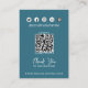 Cartão de Exposição de Joias Social QR Folha Verde Teal Escuro: Amplifique a sofisticação da sua marca com esses cartões de exposição de joias elegantes. Com um design botânico contemporâneo em paleta pastel verde teal escuro, esses cartões são uma combinação perfeita para boutiques de moda focadas em clientela feminina. O logotipo da sua marca ganha destaque no ápice do cartão. Círculos designados para brincos e colares podem ser personalizados de acordo com sua visão de design. A frente do cartão ostenta um contorno refinado de folhas botânicas verdes, exalando charme discreto. Vire o cartão para revelar seu alcance online (detalhes de mídia social/site) por meio de um Código QR, aumentando a interação com o cliente. Conclua com uma mensagem de agradecimento sincero ou uma frase distintiva na base do cartão. Personalize a exibição de ícones de mídia social ao seu g