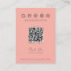 Cartão de Exposição de Joias com Folha Rosa Coral QR: Crie uma representação harmoniosa da marca com esses cartões de exposição de joias que apresentam um doce design botânico rosa coral pastel. Seu apelo sofisticado os torna uma excelente escolha para boutiques de moda que atendem a clientes femininas. Seu emblema comercial ocupa um lugar de destaque na parte superior do cartão. Personalize a colocação do clipe de cabelo e colares usando as linhas de corte designadas. Um delicado contorno de folha botânica laranja adorna a frente do cartão, adicionando um toque elegante. Vire o cartão para revelar sua presença online (detalhes de mídia social/site) através de um Código QR, promovendo o engajamento do cliente. Conclua com uma nota de agradecimento personalizada ou um slogan único na parte inferior. Personalize a exibição de ícones de mídia social ao seu gosto. Explore nossa variedade coordenada para uma solução completa de branding.