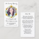 Simpatia moderna de girassol Cartões de oração funerários. Este simples, mas elegante cartão de oração memorial apresenta um eucalipto verde moderno e um elegante design de girassóis. Frente "In Loving Memory" Personalize este cartão de oração do funeral memorial com a foto, o nome e as datas de seus entes queridos e o sentimento. Poema 'Miss Me', que pode ser personalizado, por favor, contacte se quiser uma design com um poema específico que não. Este cartão de oração memorável será um guardião precioso, para os serviços funerários e para a celebração da vida. COPYRIGHT © 2020 Judy Burrows, Black Dog Art - Todos Os Direitos Reservados. Cartão de Oração Funcional Floral de Girassol