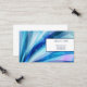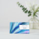 Este cartão de visita é mostrado no estoque da placa básica com um impressão de abstrato moderno em tons azuis de várias cores com texto azul.