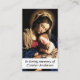 A design da frente mostra uma reprodução da pintura intitulada "Maria Mãe de Deus." O texto personalizável é exibido na parte inferior. O reverso apresenta uma oração personalizável em homenagem ao falecido e à foto.