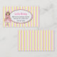 Cartão telefónico da data do jogo da menina doce, feito em um fundo do rosa, do amarelo, e o branco do teste padrão listrado. Uma área de texto oval branca, no meio, é decorada com uma borda cor-de-rosa e uns gráficos bonitos do país, de uma princesa da menina, guardarando um sapo. Personalize o texto para o senhor mesmo, como um cartão das mamães, ou para sua criança. Grande maneira de permanecer em contacto com outras mães e de arranjar datas do jogo, festas de aniversário, e capoeiras de assento do bebê.