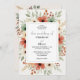 Fundo elegante do convite para o casamento, com um quadro retangular branco rodeado por flores rústicas a aquarelas em terracota, verde-sábio e tons creme. Perfeito para impressão a pedido de papelaria de casamento.