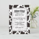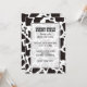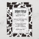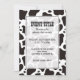 Convite de padrão de fundo de vaca sem costura preto e branco com campos de texto personalizados.