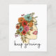 A design de camiseta apresenta uma ilustração de uma cabeça humana. A cabeça está virada para a frente e o lado direito do rosto e da cabeça está coberto por um conjunto colorido de flores. As flores são pintadas de forma estilizada, com cada flor ligeiramente diferente das outras, criando um padrão vibrante e atraente para os olhos. O slogan "continuar crescendo" é impresso em negrito e estilizado sob a ilustração. Esta mensagem é um sinal para a ideia de crescimento pessoal e automelhoria e serve como um lembrete para nunca parar de aprender, explorar e desenvolver-se como pessoa. A combinação da ilustração única e da mensagem positiva faz deste design uma escolha divertida e inspiradora para qualquer um que queira expressar sua individualidade e amor pelo crescimento e autodescoberta.