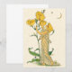 Ilustração clássica de conto de fadas infantil vintage intitulada Evening Primrose (Primavera Noturna) do artista Walter Crane, 1889. Uma pequena mulher, do tamanho de Thumbelina, está olhando para uma bela flor amarela com uma lua e uma estrela no céu noturno.