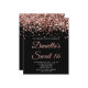 Crie seu próprio convite para a sua filha para a festa de aniversário de 16 anos. Gráficos de arte digital brilhantes de rosa dourado brilhante decorativos sobre uma cor preta de fundo sólido. Os brilhos e a brilha do luxo serão criados por elementos artísticos que impressão gostam de uma foto. Escolha um envelope, se necessário.