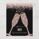 Convite de festas de aniversário de 40 anos de torrada de champanhe de luxo de luxo de orçamento... Em um elegante fundo preto com bordas brilhantes cor-de-rosa pinceladas, óculos de champanhe de diamante torravam um aniversário de 40 anos de amigo ou familiar com as palavras "Aqui está até 40 anos no planeta Terra." O verso do convite — também com brilho rosa-rosado feminino — exibe todos os detalhes da festa — nome, data, hora e local da honraria, além de informações RSVP. Um início glamouroso para um aniversário de 40 anos. Todo o texto em frente e verso deste convite para barato pode ser facilmente revisado no modelo de personalização.