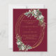 Para uma queda ou casamento no inverno. Um fundo de burlôncio decorado com cones, bagas brancas e verde. Uma falsa estrutura oval dourada. Personalize e adicione seus nomes e detalhes. 1 folha = 1 convite impresso de borda a borda.