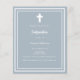 Fundo azul empoeirado, decorado com um quadro branco, e uma cruz branca Personalize e adicione o nome e os detalhes. Texto branco. 1 folha = 1 convite impresso de borda a borda.