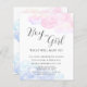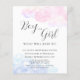 Você está planejando uma festa de revelação de gênero? Convide familiares e amigos para comemorar com este charmoso convite orçamental. Apresenta nuvens de aquarela cor-de-rosa e azul e tipografia de na moda que diz "Menino ou Rapariga." Perfeito para uma festa reveladora de gênero em qualquer estação. Facilmente personalizável. Original Watercolor © Michele Davies.
