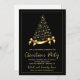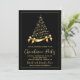 Este convite de festas de Natal clássico apresenta um espantoso design de árvore de Natal preto e ouro elegante e brilhante. Perfeito para celebrar os feriados no estilo, este convite certamente impressionará seus convidados. O convite pode ser personalizado para incluir seu nome, detalhes da festa e quaisquer outras informações especiais que você queira incluir. Prepare-se para receber a festa de Natal mais memorável com este belo e sofisticado convite.