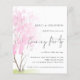 Convite de festas De Casamento Da Noite De Blossom Rosa De Orçamento. Um valor para o alternativo do ORÇAMENTO em tamanho menor de 4,5 x 5,6" de semirbrilho de 110 lbs, que é de espessura semelhante a um cartão postal (no entanto, não é adequado para uso como cartão postal). POR FAVOR, OBSERVE QUE HÁ UM convite por folha. Uma árvore aquática branca com flor de primavera rosa para convidar seus convidados de casamento noturnos. Uma tonalidade graduada está no topo, de modo que a ilustração está por trás do texto parcialmente sobreposto no topo e à direita. Um roteiro manuscrito para o Partido da Noite e o resto do texto que você pode personalizar facilmente.