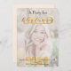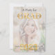 Comemore seu formando com estilo com este convite de festas de sobreposição de fotos em chic. Uma foto casual dele ou dela amolecida com uma camada de velum. Bold ombre gold text "formando e 2023" com o nome do script de tendência e o ingênuo de festa simples completa este mínimo elegante Convite para Festas de formatura.