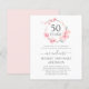 Uma coroa elegante e bonito de cereja floresce cerca 50 anos no topo deste convite de festas de 50 anos de casamento. O texto da cinza de pomba mole complementa o floral de cor d'água rosa. A combinação da escrita caligráfica moderna e do texto ereto dá-lhe uma vibração contemporânea.