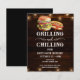 Convites de Aniversário de Grelha e Refrigeração. É fácil personalizar. Todo o texto é ajustável e fácil de mudar para as necessidades do seu próprio partido. Elementos de fundo rusticados das luzes de string. Diversão Chalkboard espirra e floresce. Hambúrguer de aquarela e gráficos de hotdog. Convites para ele. design de aniversário de CHURRASCO de bar ou quintal. Em qualquer idade, apenas mude o texto.