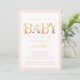 Convidado para Chá Dourado Floral Baby Pink
