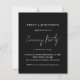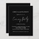 Um valor para o alternativo do ORÇAMENTO em tamanho menor de 4,5 x 5,6" de semirbrilho de 110 lbs, que é de espessura semelhante a um cartão postal (no entanto, não é adequado para uso como cartão postal). POR FAVOR, OBSERVE QUE HÁ UM convite por folha. Convite Preto De Festa De Casamento Da Noite. Um estilo manuscrito para o Partido da Noite e o resto do texto que você pode personalizar facilmente. As cores do texto e do plano de fundo podem ser alteradas para qualquer opção ou sua escolha por meio da opção personalizar mais.