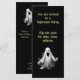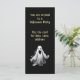Um convite para uma festa de Halloween com um fantasma assustador e informação de ambos os lados.