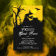 Uma bruxa malvada e seu caldeirão, um morcego negro, cerca de piquete e árvore nua, silhuetados contra um céu assustador. Estes convites para festas de Halloween são impressos em papel semirbrilhante VALUE 110 lb. **ENVELOPES brancos SÃO OPCIONAIS e um custo adicional. CORRESPONDENDO a itens na nossa loja.