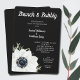 Uma flor esbelta e branca de anêmona e folhas sobre fundo negro estão prontas para personalizar o convite para chás de casamento, convites de chá de panela ou qualquer evento especial, apenas para mudar a redação. CORRESPONDENDO a itens na nossa loja.