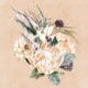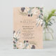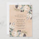 Design apresenta um elemento floral impresso em tons de bronzeado natural e branco sobre folhas verdes e flores de proteína. Excelente para as comemorações do casamento!