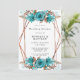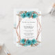 Design apresenta um elemento floral impresso em tons de turquesa e ouro sobre folhas verdes e floradas de pedras... Excelente para as comemorações do casamento!