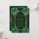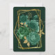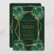 Design apresenta um elemento floral colorido impresso em tons de esmeralda verde e ouro. Texturas de canvas verde com falso quadro geométrico em ouro e florações de pedras com script de caligrafia em ouro ou escrevendo de tipo. Excelente para as comemorações do casamento!