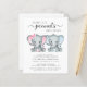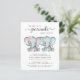 Um belo e amigável convite para o gêmeo e a menina, que são amigáveis ao orçamento, com "Dois Docinhos Doce Estão A Caminho" escrito em tipografia de cinza macia e um roteiro de na moda com pântanos, e duas aquarelas cor-de-rosa e azul pastel de elefantes bebês. Adicione o nome da futura mãe e os detalhes do chá em uma simples tipografia de cinza.