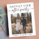 Elemento moderno e favorável ao orçamento ou anúncio de casamento e convite de recepção menores. A frente mostra sua foto do dia do casamento e "Feliz Festa Sempre" em uma mistura de simples tipografia e roteiro de tendências com balanços. Sob sua foto você pode adicionar seus primeiros nomes e a data do casamento. No verso, você pode personalizar sua mensagem em mais detalhes e adicionar detalhes de festa ou recepção e seus nomes em um script semelhante a assinatura. Este papel semirbrilhante do orçamento é semelhante em peso ao papel fotográfico. Uma versão tradicional de estoque de cartão grosso também está disponível (mensagem para o link).