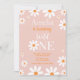 Daisy Wile One Birthday Invitation Modelo é perfeito para primeiro aniversario de garoto ou menina. O convite para o primeiro aniversário da Retro Daisy, temerário, é cheio de elementos divertidos e bonitos como margarida, cores retrorreflectoras, fundo de groovy e muito mais. Crianças no primeiro aniversário são especiais e este convite pode ajudá-lo a fazer uma festa memorável