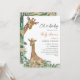 Faça seu chá de fraldas inesquecível com nosso convite para Chá de fraldas de "Querida Girafa". Este convite maravilhosamente desenhado é perfeito para qualquer chá de fraldas moderno, combinando elegância e um toque de charme caprichoso. Do lado direito, ele mostra uma na moda, moderna fonte escrita à mão que adiciona um toque pessoal e contemporâneo. No lado esquerdo, uma ilustração impressionante da aquarela captura o vínculo amoroso entre uma pequena girafa e sua mamãe. Essa imagem é cercada por lindas folhas verdes, luxuosas, criando uma cena serena e encantadora. Pressione o botão fornecido para personalizar o texto com as informações do seu chá de fraldas. Você ficará encantado!