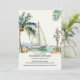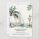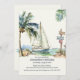 Ilustrações de Cores d'Água de veleiro Criado manualmente com Palm Tree e Palm Leaves em Pé de Marfim. Nas costas está o veleiro.