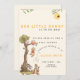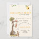 Celebre a chegada iminente do seu "pequeno querido" com este encantador convite de chá de bebê! Com um tema caprichoso da floresta inspirado em personagens clássicos da infância, este design apresenta uma cena divertida com animais, uma árvore, um balão e uma colmeia. Os tons quentes e detalhes encantadores criam uma estética doce e convidativa.
