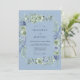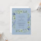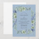 Este design apresenta uma paleta de cores tranquila de azul de centáurea macia e verde-sage, criando uma atmosfera romântica e arejada. Rosas delicadas em aquarela e hortênsias exuberantes são artisticamente dispostas ao longo da composição, complementadas por folhas e raminhos delicados. As texturas pictóricas e tons suaves evocam um senso de elegância atemporal para um evento botânico.