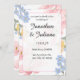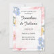 Convite para casamento floral delicioso e encantador, com flores pastel moles em tons de rosa, azul e amarelo. O layout elegante destaca os nomes do casal em uma fonte de script graciosa, moldada por uma borda rosa sutil. Ideal para casamentos de primavera e verão, este convite combina estilo romântico com um tema de jardim fresco. Totalmente personalizável para incluir seus detalhes de eventos, fazer-o uma escolha perfeita para um anúncio de casamento clássico e eterno.