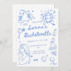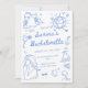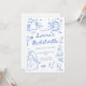 Seu convite perfeito para a despedida de solteira. Uma ilustração divertida de uma noiva rodeada por balões, confetes e taças de champanhe.