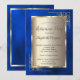 Moldura floral de ouro elegante e moldura dourada sobre fundo azul real.