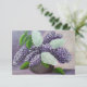 A imagem mostra uma buquê de lilases verdes e lilás. Está sobre um fundo leve.