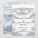 São espíritos livres que amam estar ao ar livre, onde podem subir às nuvens e ver a vista dos cumes das montanhas? Este convite mostra uma montanha erguendo-se acima das nuvens. É pintado em aquarela e aprimorado com design gráfico, As cores são azuis, verdes e cinzas sutis. Se você gosta de caminhar, acampar, escalar ou estar na natureza, este design reflete seus desejos.