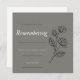 "Um solene e respeitoso convite para o funeral contra um fundo de cinzas mudas. Flores negras elegantes adornam sutilmente as fronteiras, melhorando o tom sombrio. O texto, escrito em fonte formal, transmite os detalhes do serviço com graça e simplicidade, honrando a memória dos falecidos. Esse convite é feito para refletir a gravidade da ocasião, com detalhes subestimados, mas pensativos, que evocam um sentido de reflexão e memória."