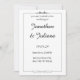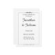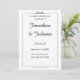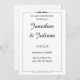 Convite de casamento minimalista preto e branco com linhas limpas e tipografia elegante. Apresentando uma borda simples, letra cursiva clássica para os nomes do casal e um floreio decorativo sutil na parte inferior, este design é perfeito para casamentos modernos, formais ou tradicionais. Totalmente personalizável e ideal para casais que buscam um estilo de convite atemporal e discreto que mantém o foco nos detalhes importantes.