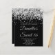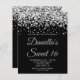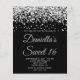 Crie seu próprio convite para a sua filha para a festa de aniversário de 16 anos. Cinza cintilante de prata cintilante e decorativa brilha nos gráficos de arte digital sobre uma cor preta de fundo sólido. Os brilhos e a brilha do luxo serão criados por elementos artísticos que impressão gostam de uma foto. Escolha um envelope, se necessário.