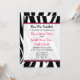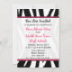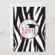 Um convite original da graduação que caracterizam uma beira do impressão da zebra através da parte superior e a parte inferior com rosa quente aparam. Texto cor-de-rosa e preto. Personalize com detalhes de seu próprio evento. Design contínuo do impressão da zebra das características do lado oposto. O texto dentro círculo cor-de-rosa do quadro dado forma lê uma "classe de 2011" em cor-de-rosa e em preto com uma ilustração de um boné de formatura preto. O excelente para a forma envia o formando. Artigos de harmonização Look for da "na seção da loja graduação" da loja cor-de-rosa da escola.