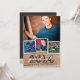O fundo do woodgrain e a tipografia rústico, resistido do na moda ajustam o palco para um convite/anúncio elegantes da graduação do país. Com sala para uma multi colagem da foto de seu formando, este design trabalha igualmente bem para uma menina ou um menino. Todo o texto na parte traseira pode facilmente ser personalizado para um convite de festas (como mostrado) ou criar um anúncio somente.