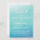Este design é ideal para uma cerimônia de casamento moderna, casual, na praia ou com temática aquática. O plano de fundo ombre, sutil, leve e azul de cor oceânica é o cenário perfeito, simples e elegante para a linda e moderna fonte do roteiro de minha coleção que diz "Você é convidado" em branco com uma sutil sombra teal. Esta frase de efeito ocular foi renderizada como um gráfico, enquanto todos os outros elementos de texto aparecem em um conjunto de fontes versátil serif que você pode alterar conforme desejar. Uma versão rotacionada da imagem de aquarela é impressa no verso para uma aparência em negrito e acabada. |